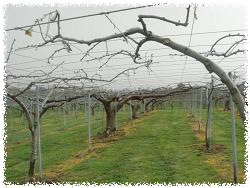 春先から防除は始まり、石灰硫黄合剤やボルドー液など防除回数にカウントされないものを使用し全体の回数を減らすよう努めています。薬剤の倍率も高くして薄めの防除に心がけています。7月の初旬は幸水では来年の準備が始まります。来年慣らせる枝を倒す「誘引作業」に1週間ほどかかります。誘引作業は来年の枝に花芽を多く付かせる為に行います。暑い中少々つらい作業です。 8月の中旬からは幸水の収穫が始まります。